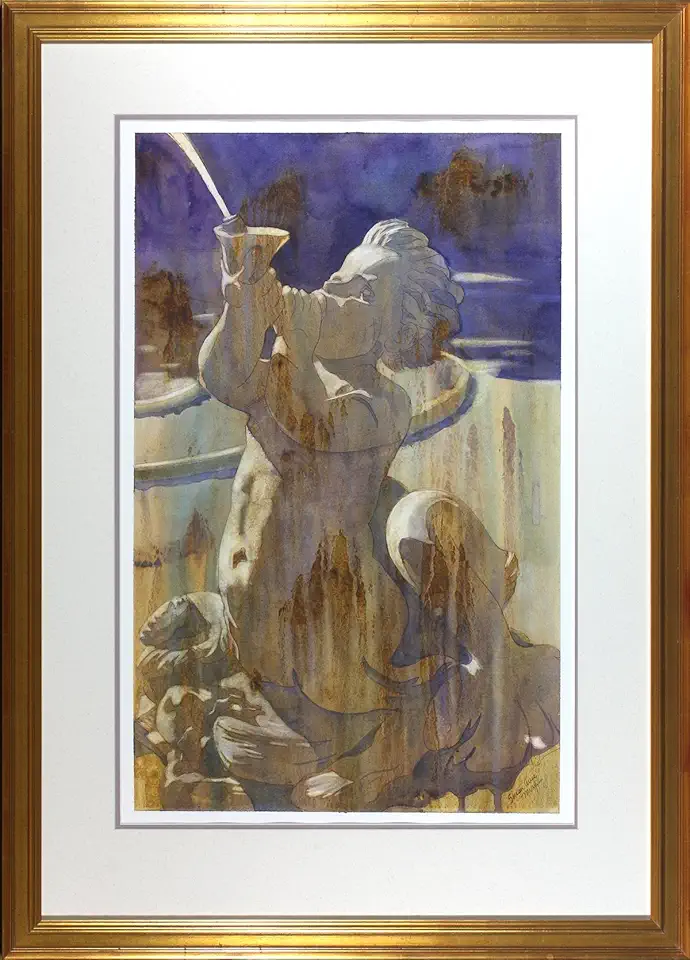 "Water Nymph", Framed Original Watercolor Painting, 20 X 27 Inches